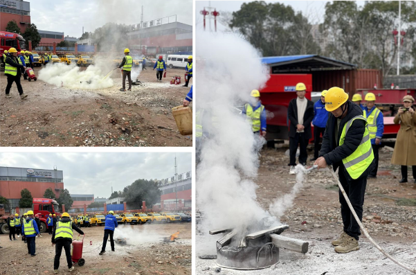 开工第一时间,全体员工在公司停车场集合,举行消防演练活动。